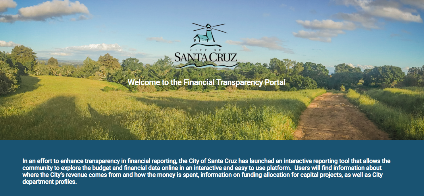 In an effort to enhance transparency in financial reporting, the City of Santa Cruz is partnering with OpenGov to offer an interactive reporting tool that allows citizens to explore the budget and actual data online in various graphical formats selected by the user.